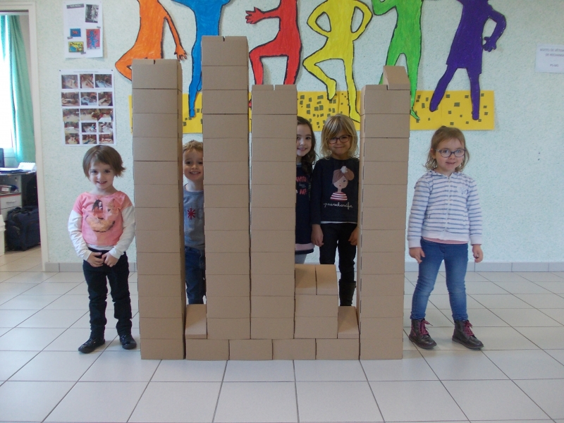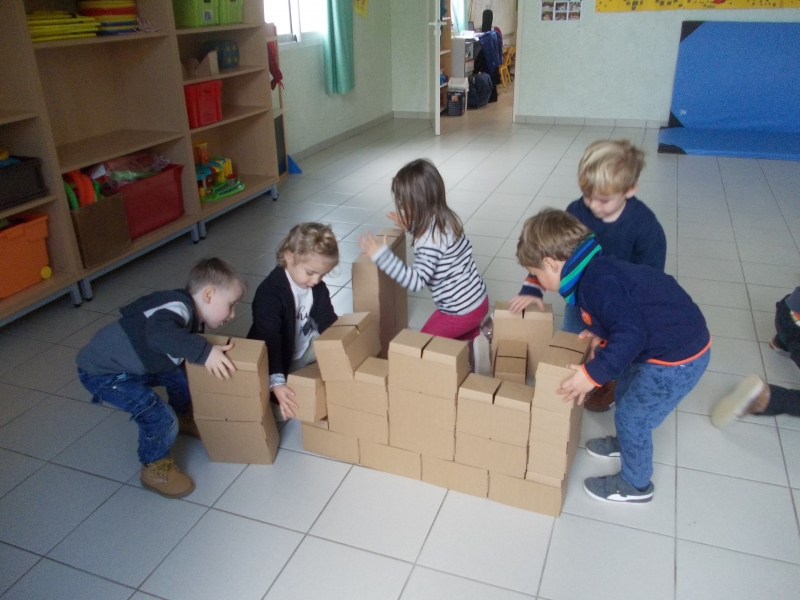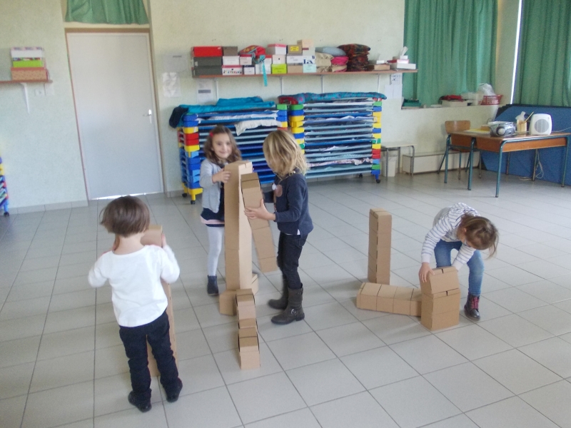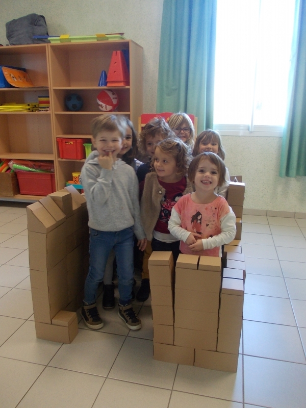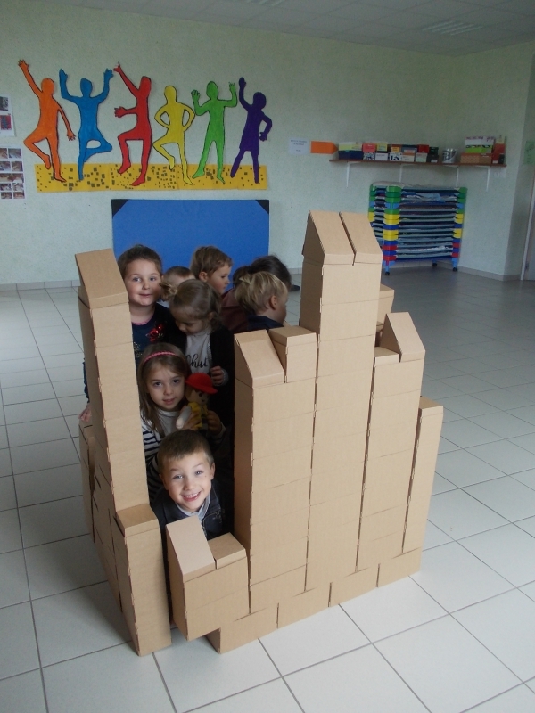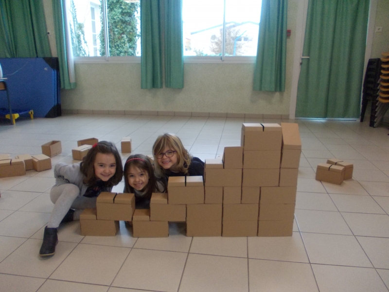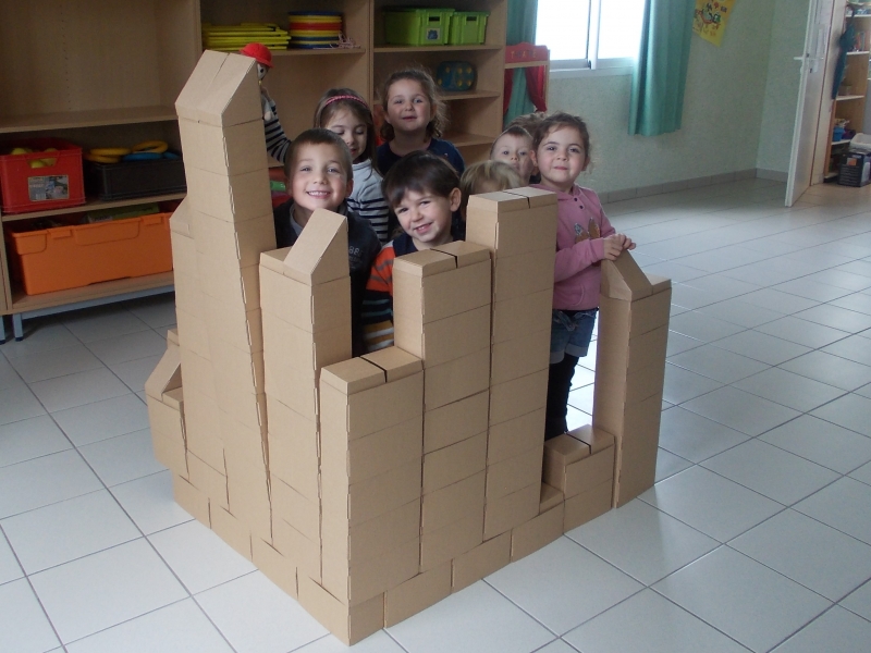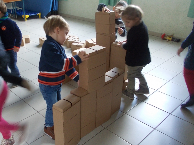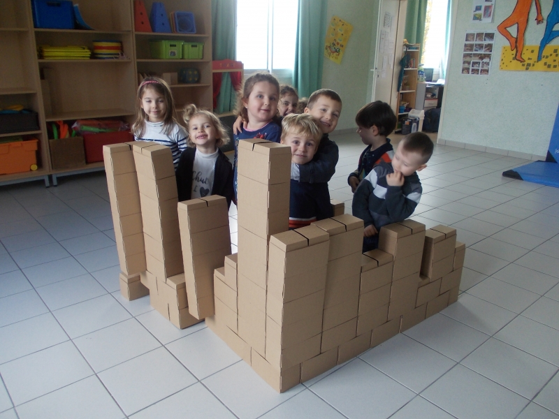 Nous avons découvert un nouveau jeu: les “Gigi blocks XXL”. Ce sont des grands blocs de construction en carton. Avec ces blocs, nous pouvons inventer de grandes constructions. En voici quelques-unes ….