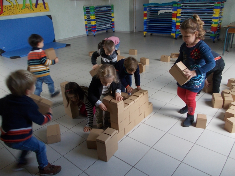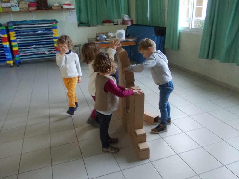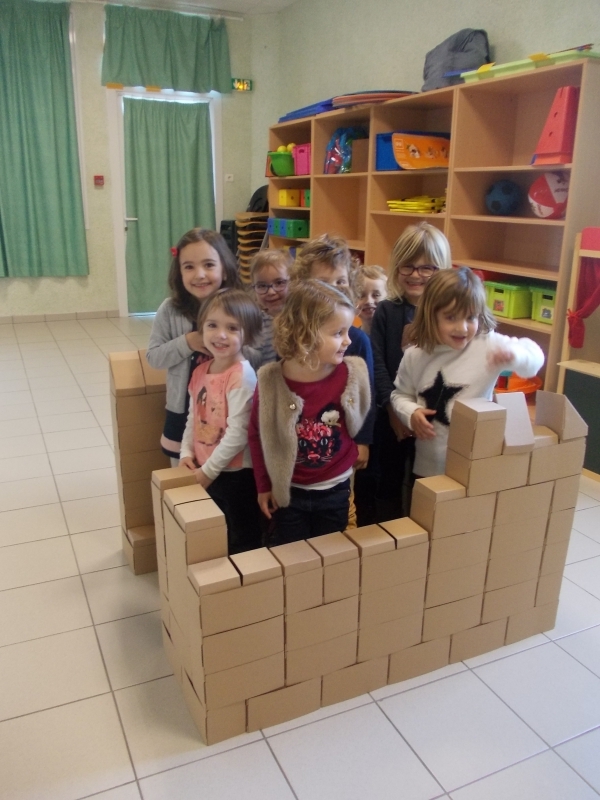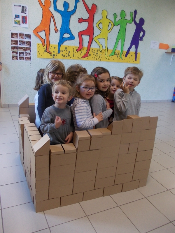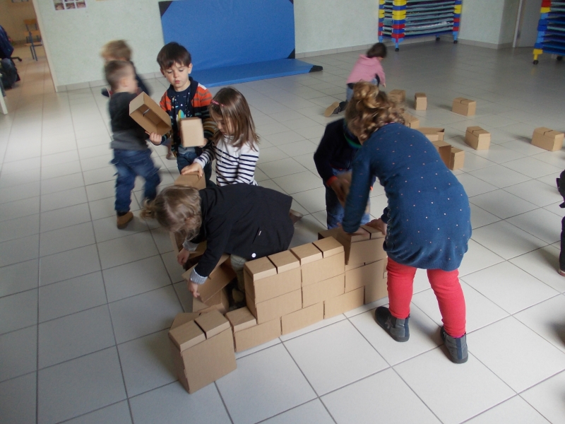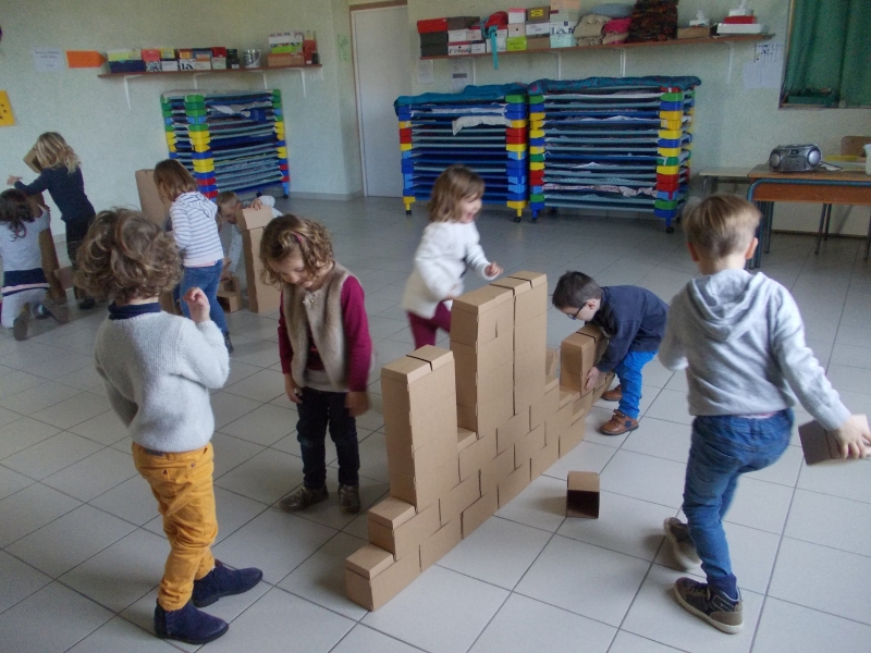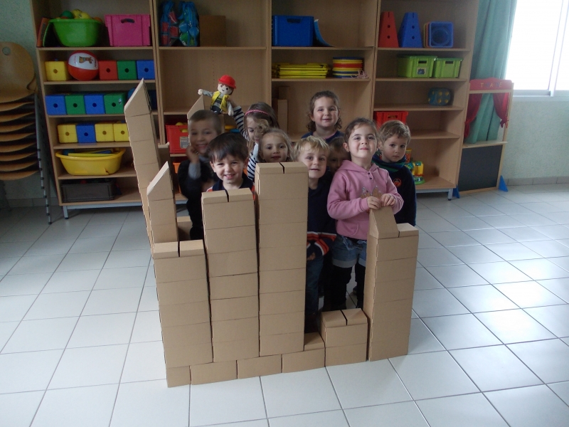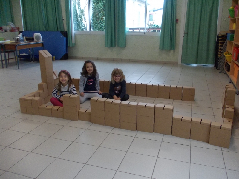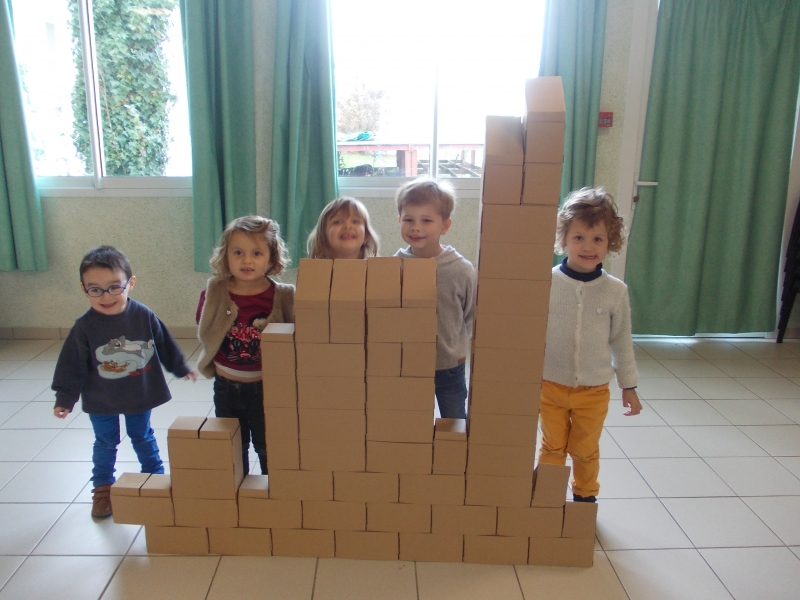 Nous avons découvert un nouveau jeu: les “Gigi blocks XXL”. Ce sont des grands blocs de construction en carton. Avec ces blocs, nous pouvons inventer de grandes constructions. En voici quelques-unes ….