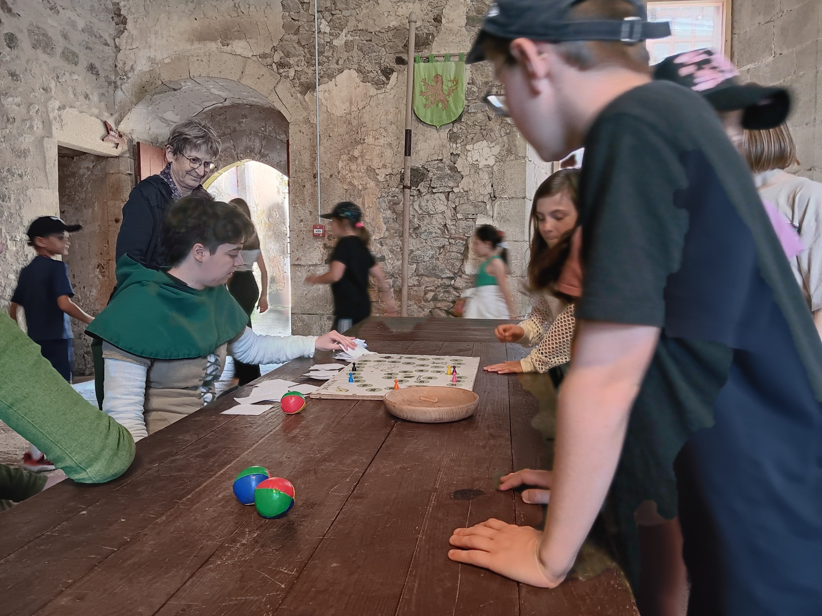 Mardi 20 mai les CE2/CM1 et les CM2 sont allés visiter le château de St Mesmin. Ils ont débuté par une visite des différentes salles et appris le vocabulaire et la fonction de chacune. Les habitants du château avaient le même confort que nous et se souciaient beaucoup de leur hygiène en prenant des bains régulièrement. Après le pique-nique, les enfants ont réinvesti leurs connaissances en participant à un jeu de l’oie dans le château. La visite s’est achevée par la confection d’une bourse en cuir.