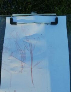 Troisième activité : Empreintes de feuilles d’arbres avec crayon cire
