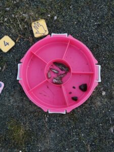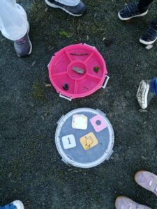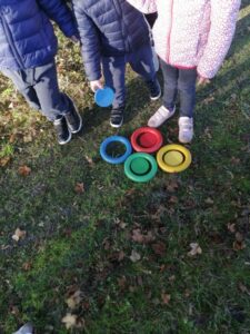Quatrième activité : Chasse aux trésor des couleurs “retrouver les palets cachés et les replacer dans le bon anneau”