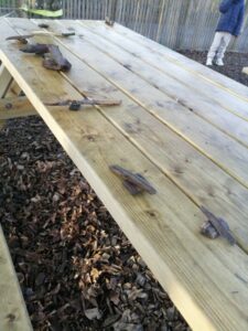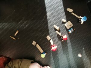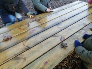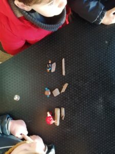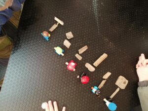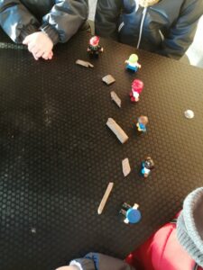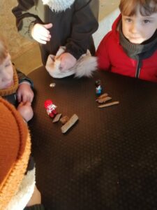 Nous avons pu vivre un moment de mathématiques en partageant un certain nombre de copeaux entre des petits personnages :