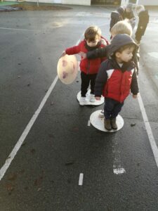 La deuxième activité était basée sur la coopération : “comment traverser la rivière avec un nénuphar chacun ?”