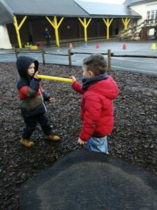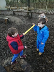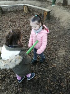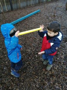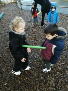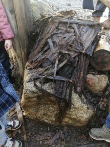 Puis ce fut un long moment de jeux libres où certains enfants ont fabriqué une cabane avec des écorces :