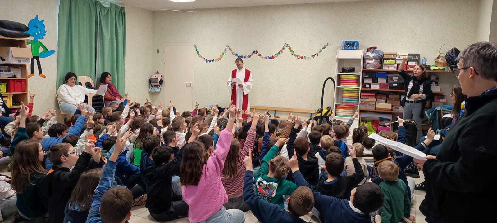 Vendredi 3 avril les enfants de l’école ont vécu un temps fort sur le thème du partage et de l’entraide. Les élèves de toutes les classes étaient mélangés et ont pu participer à 5 ateliers : apprentissage d’un chant signé, présentation de l’association “Les enfants de Madagascar”, un bricolage sur le printemps, une vidéo sur Pâques et un jeu sportif.