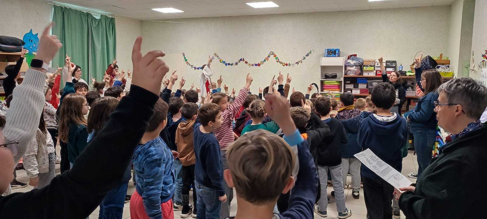 Vendredi 3 avril les enfants de l’école ont vécu un temps fort sur le thème du partage et de l’entraide. Les élèves de toutes les classes étaient mélangés et ont pu participer à 5 ateliers : apprentissage d’un chant signé, présentation de l’association “Les enfants de Madagascar”, un bricolage sur le printemps, une vidéo sur Pâques et un jeu sportif.