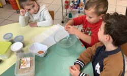 Pour la semaine du goût, toute l’école a cuisiné pour partager un goûter. Dans notre classe de PS-MS, nous avons confectionné un pain aux graines sans farine : Puis, après la récréation de l’après-midi, est venue l’heure de la dégustation. Les autres classes avaient préparé des cakes salés, des rillettes…